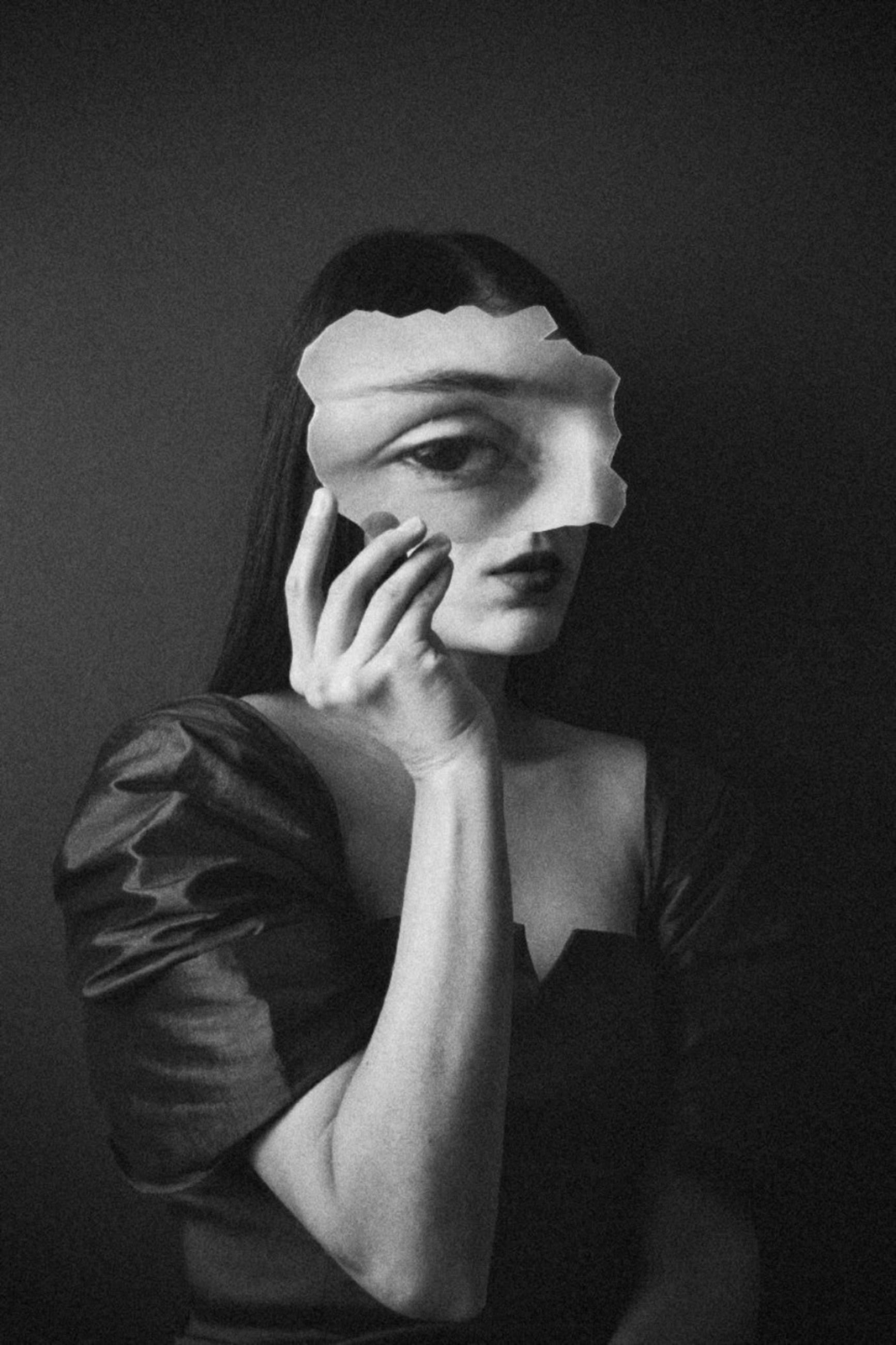 This black-and-white self portrait shows me holding a magnifying sheet in front of my eye to convey intensity and my keen interest in discovering details. I focused on my eye to emphasise the importance of observation and exploration.