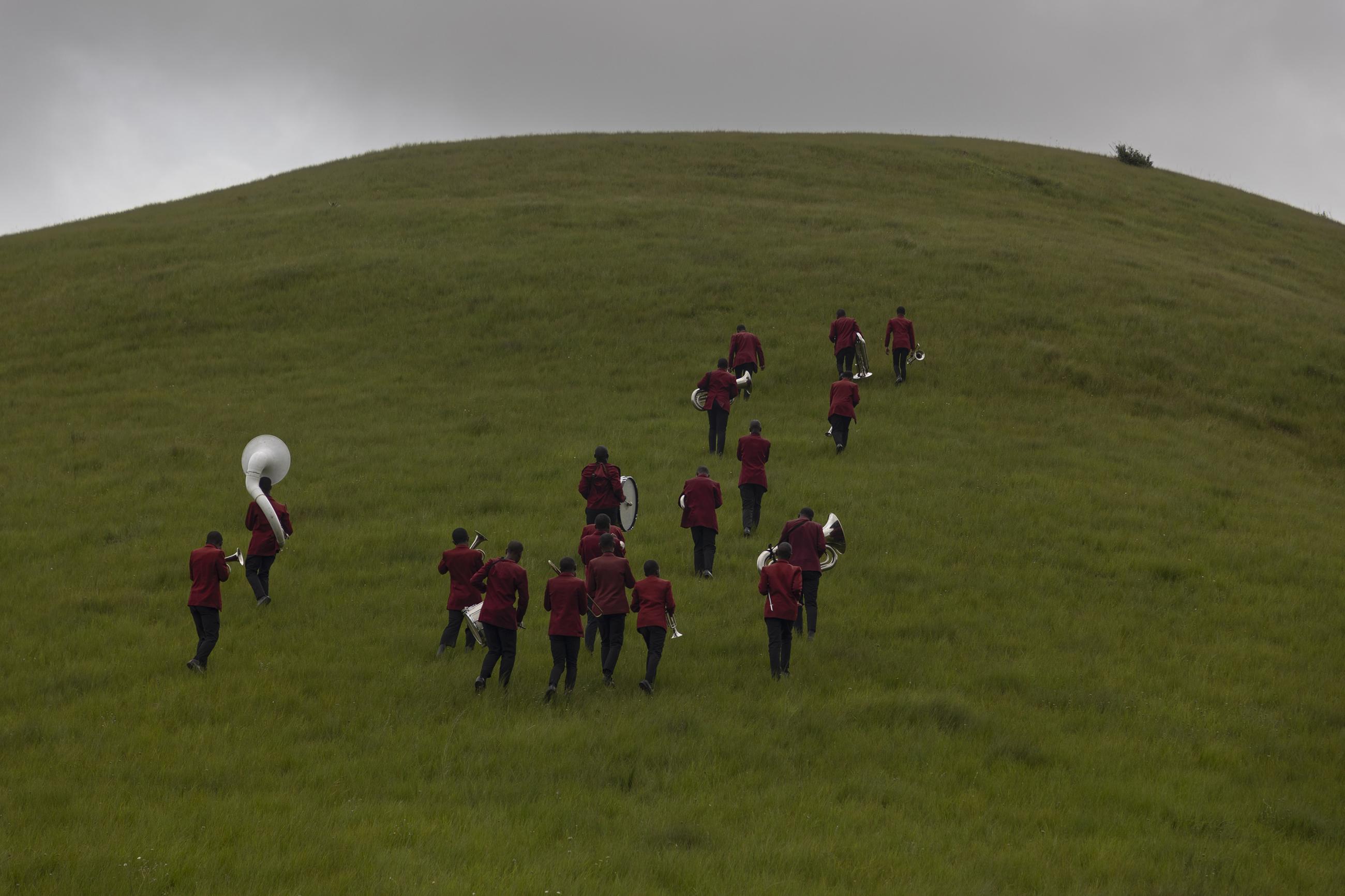 After performing at a community event on KwaZulu-Natal’s south coast, members of the Mthwalume Brass Band begin the long walk home, climbing a steep mountain road with their instruments in tow. The journey mirrors the band’s own struggle, sustained by passion and discipline, yet slowed by limited resources. The image captures exhaustion and determination, revealing how far they still must travel, not only across the landscape, but toward the recognition and support needed to fully realise their potential.